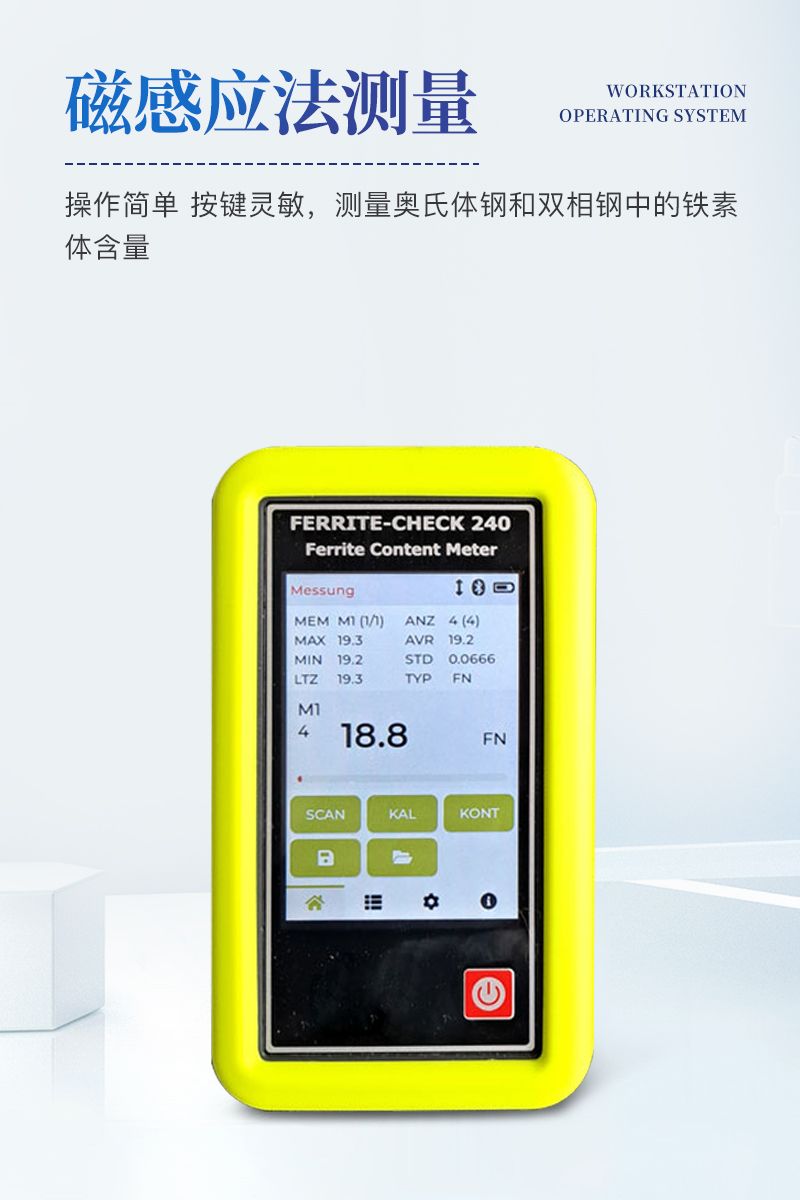 FERRITE-CHECK 240铁素体含量检测仪采用分体式的设计,使用方便,仪器符合Basel标准DIN EN ISO 8249,使用磁感应法测量奥氏体钢和双相钢中的铁素体含量。