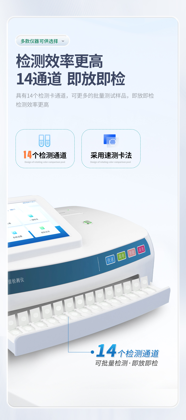4、★具有14个检测卡通道,可更多的批量测试样品,即放即检,检测效率更高。