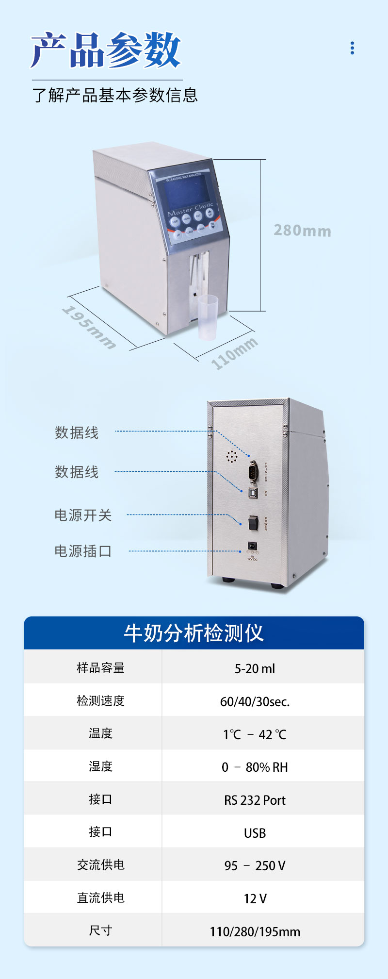 1、MILK CLASSIC是一种高质量可以测量9种牛奶参数的仪器。