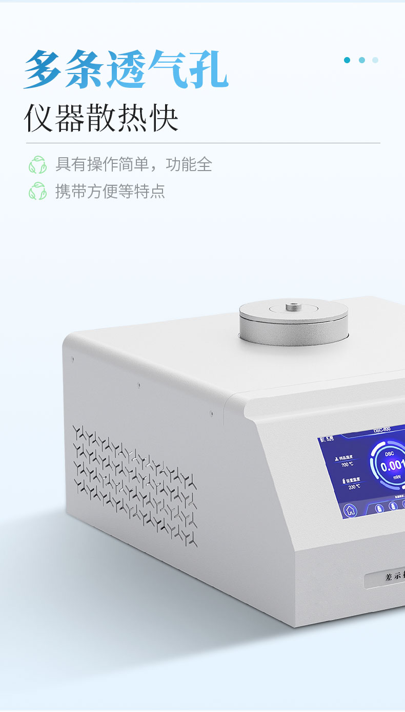 测量与热量有关的物理、化学变化,如玻璃化转变温度、熔点、熔融温度、结晶与结晶热、相转变反应热,产品的热稳定性、固化/交联、氧化诱导期等。